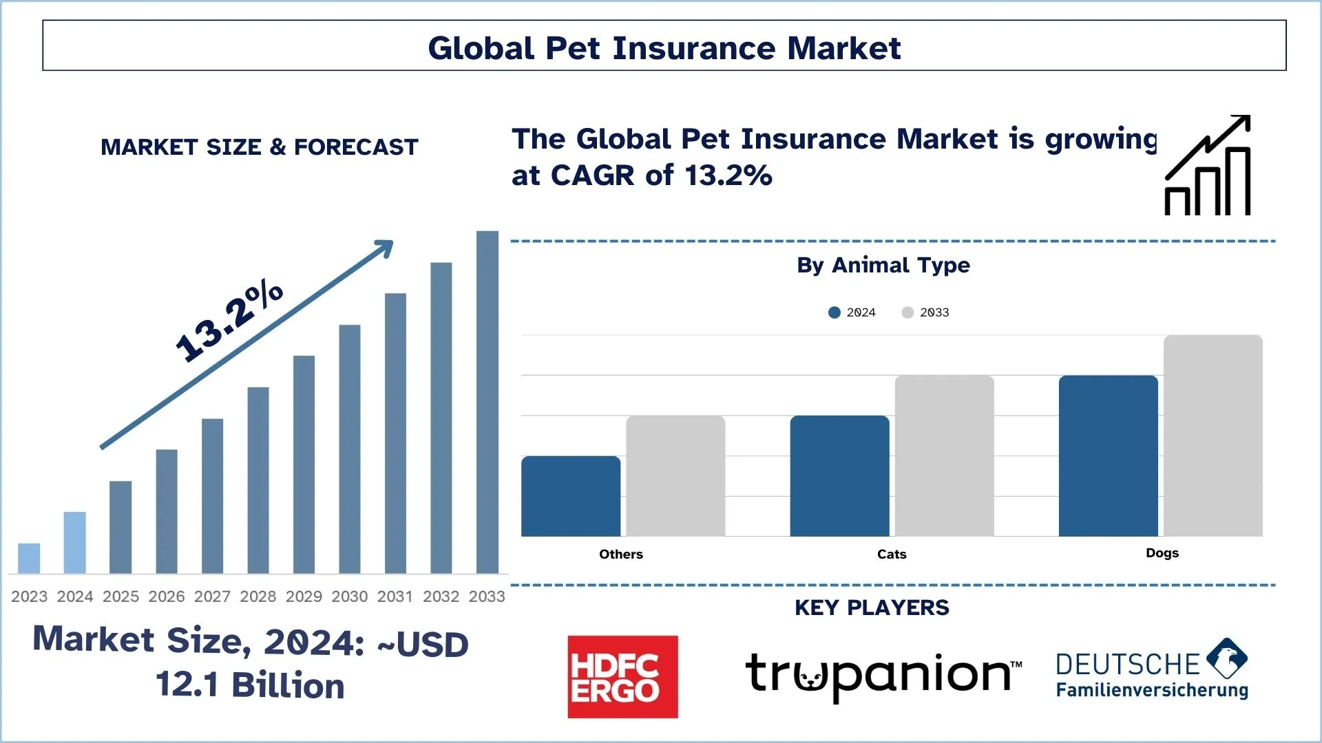 The Pet Insurance Market was valued at approximately USD 82.6 billion in 2024 and is expected to grow at a substantial CAGR of around 9.5% during the forecast period (2025-2033), owing to rising veterinary costs.