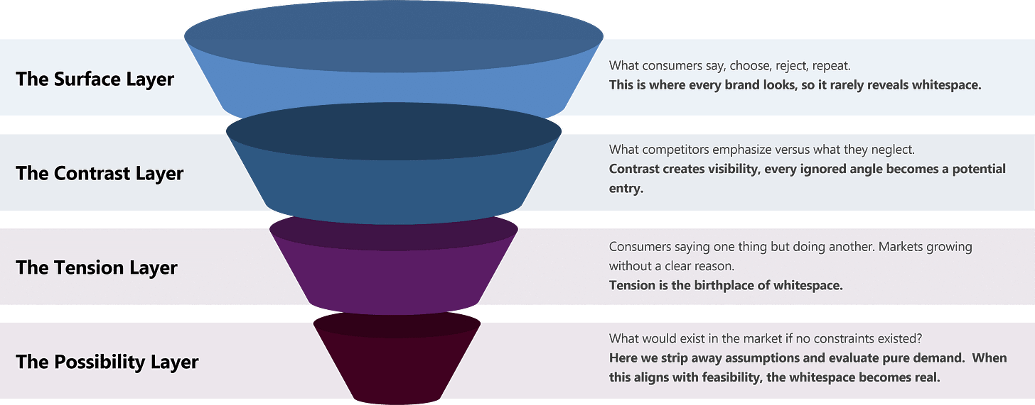 Because they chase demand. Whitespace identifies pre-demand — the subtle signals that turn into market forces.