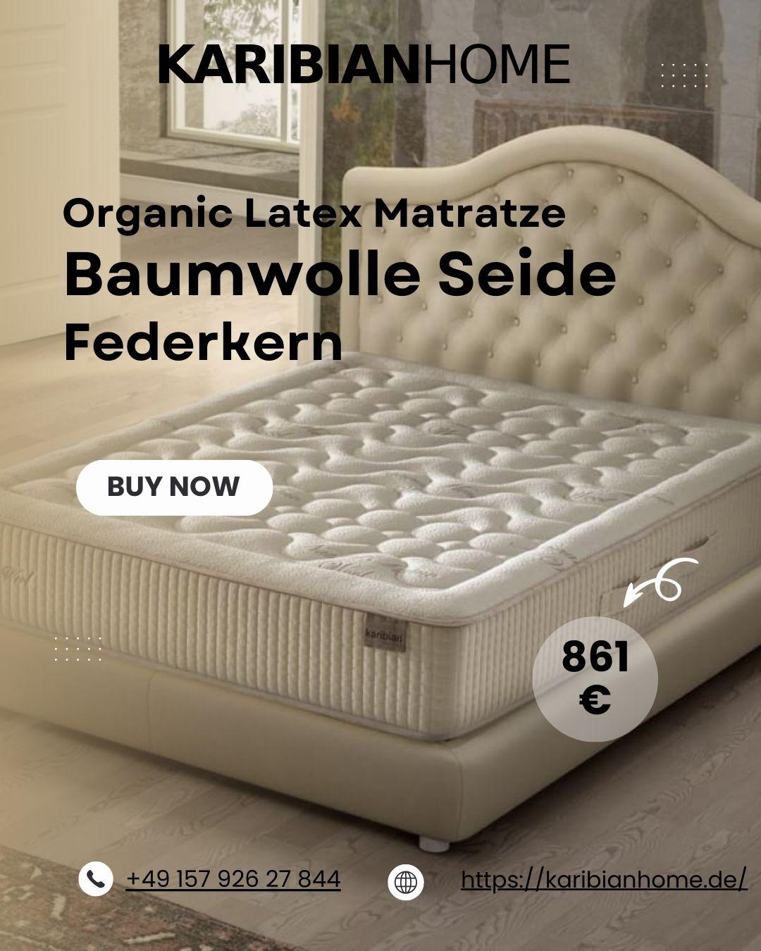 Organic Latex Matratze Baumwolle Seide Federkern – Natürlich, klimaregulierend, komfortabel Die Organic Latex Matratze Baumwolle Seide Federkern bietet perfekte Körperanpassung, nachhaltige Materialien und ein angenehm trockenes Schlafklima. Naturlatex reagiert punktgenau, Baumwolle sorgt für Frische und Seide für elegantes Wohlbefinden. Der Federkern schafft zusätzliche Belüftung und Unterstützung. Eine hervorragende Wahl für dauerhaften Komfort. Auf der Seite entdecken: https://karibianhome.de/matratzen/platinum-collection/organic-latex-matratze